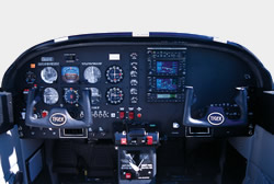 The all-glass flightdeck presents flight instrumentation, location, navigation, communication, and identification data on large-format, high-resolution displays.